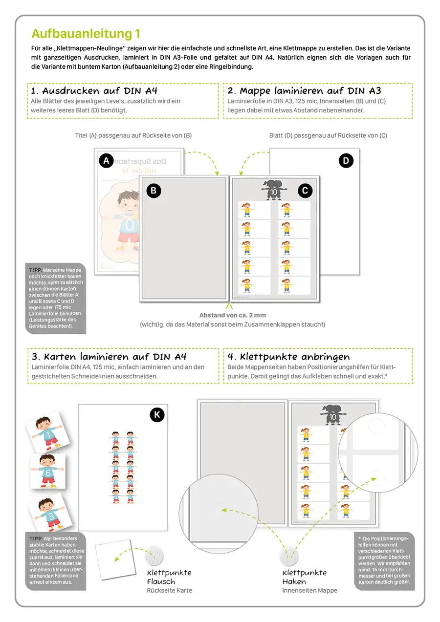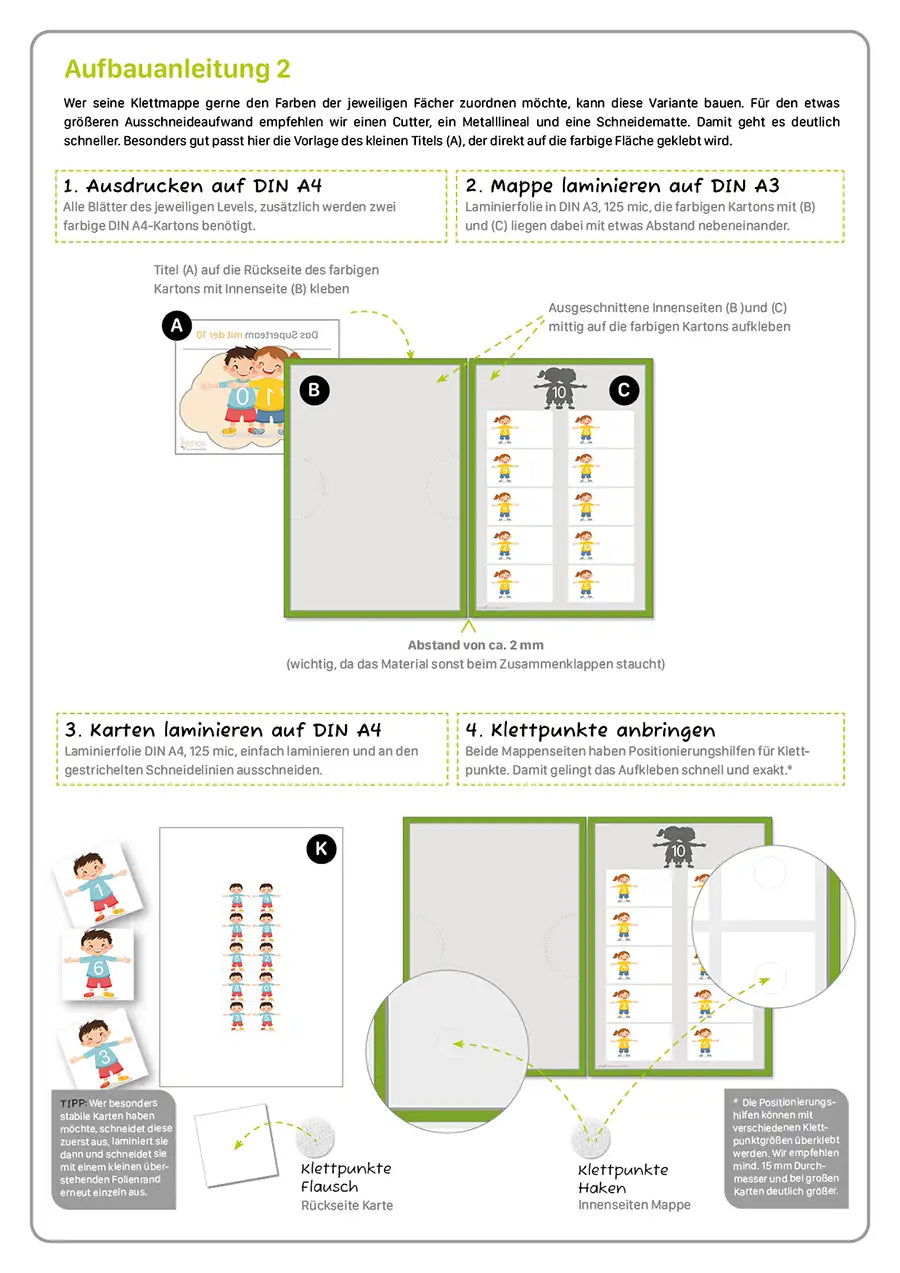Die Mappe ermöglicht auch nicht schreibenden Kindern eine Teilhabe am Unterricht und eignet sich gut für Lernstationen. Außerdem fördert sie die Entwicklung einer Arbeitshaltung, die Auge-Hand-Koordination und die Konzentration.